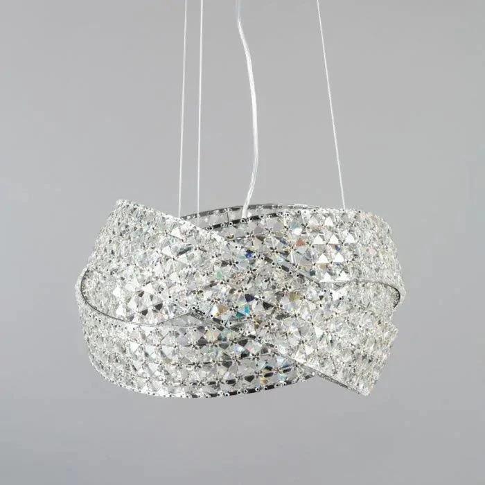 The Cypress Small Crystal Rings Ceiling Pendant is finished in a stylish chrome and covered in crystal effect beads which allows it to shine bright in your room, making it an elegant centrepiece. Â