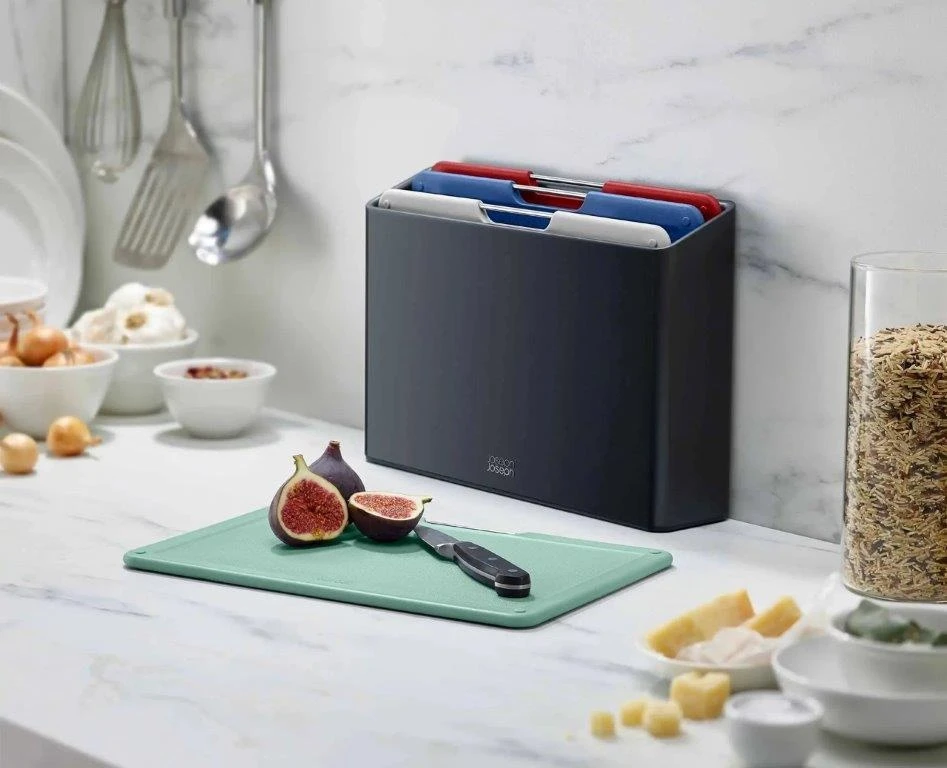 Our chopping board set includes four colour-coded boards with knife-friendly, textured surfaces and non-slip grip feet for safer slicing, chopping and dicing.