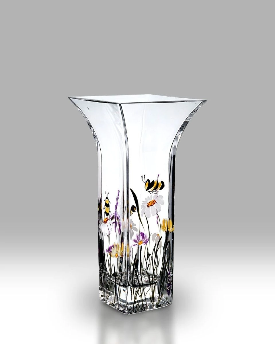 Nobile Glassware Bees & Ladybird Flared Vase 22.5cm. This truly stunning hand crafted and decorated Vase featuring a beautiful Bees & Ladybird design.