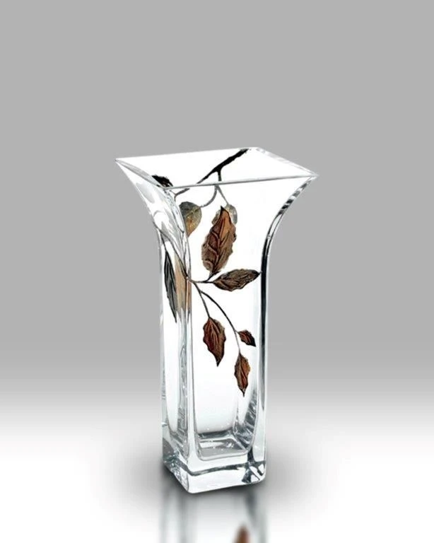 Beautifully hand crafted blown glass vase with burnished gold leaf tendril design wrapping around the body of the vase – stunning!