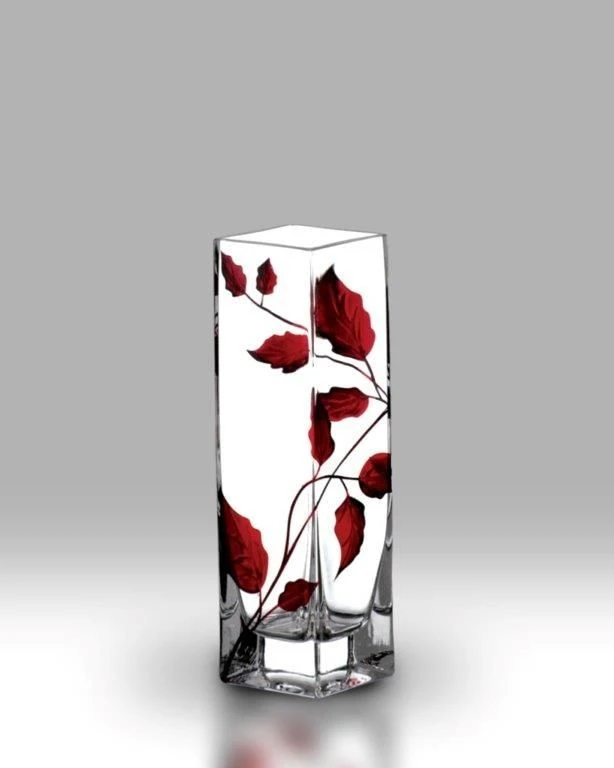 Beautifully hand crafted blown glass bud vase with Ruby Red leaf tendril design wrapping around the body of the vase – stunning!