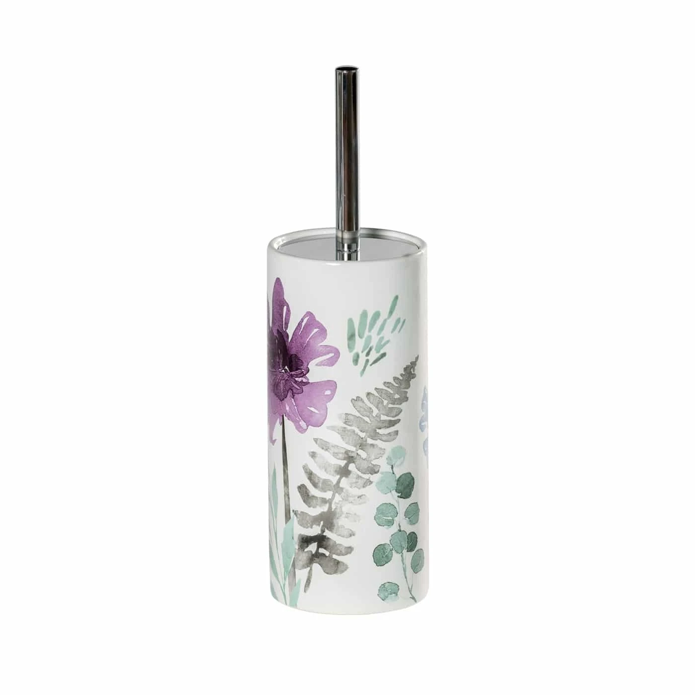 The Jardenia floral toilet brush holder will enliven the drabbest space. The set includes a blue/purple floral holder with chrome-plated handled toilet brush.