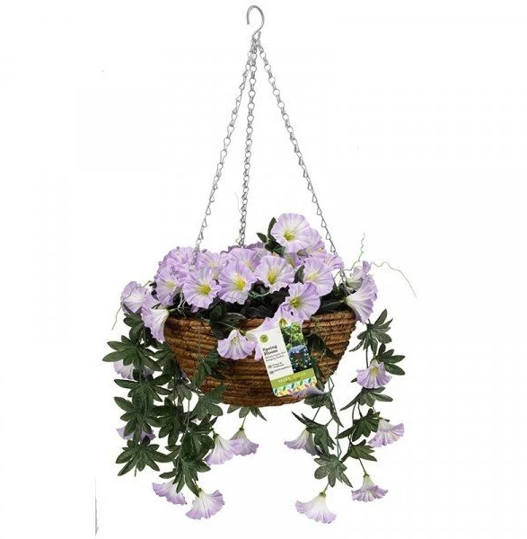Beautiful realistic basket bouquet enhances any garden, balcony or outdoor space